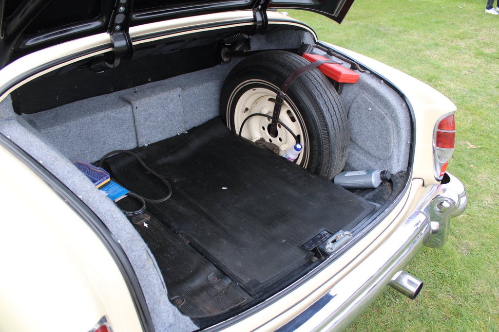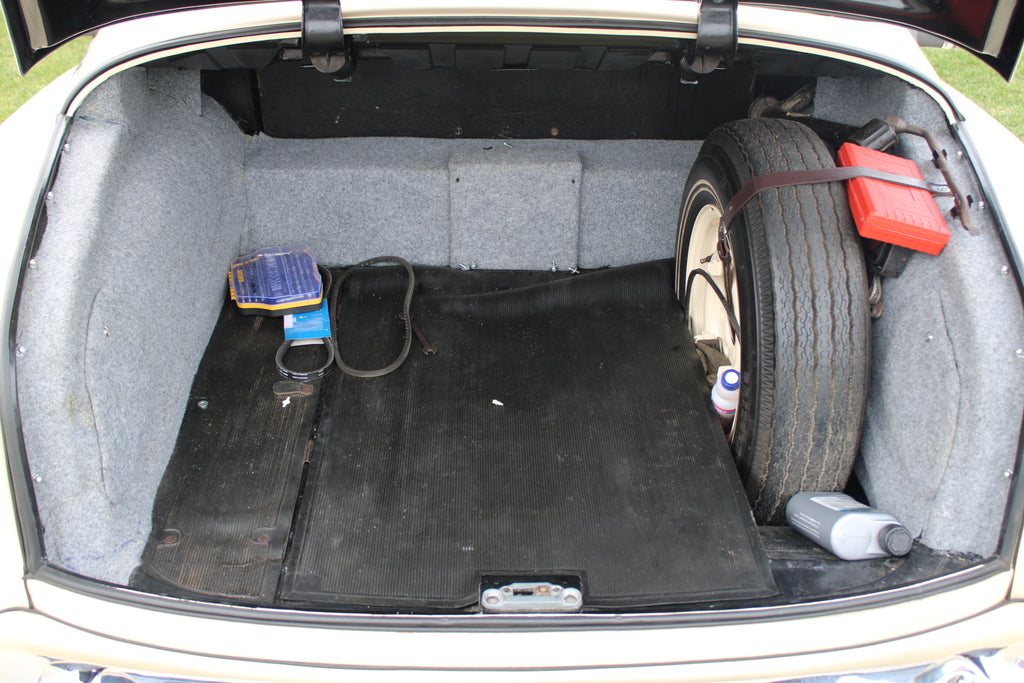 Die für die damalige Zeit luxuriöse Ausstattung bietet Annehmlichkeiten wie eine Heizung, eine Anzeige für Öldruck und Batteriespannung sowie eine Temperaturanzeige. Durch die verbaute Servolenkung lässt sich das „Adenauer Cabrio” sehr leicht bewegen und harmoniert perfekt mit dem äußerst komfortabel abgestimmten Fahrwerk. Selbst heute ist der Fahrkomfort dieses Fahrzeugs einfach unglaublich. Das Verdeck ist neu und bietet die Möglichkeit, die PVC-Scheibe bei Bedarf zu öffnen. Für Musik an Bord sorgt das originale Becker-Mexico-Radio.